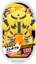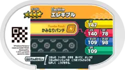 Electivire (Japanese: エレキブル Elekible) is a Grade 4 Pokémon Mezastar tag. It is part of the third Gorgeous Star set.