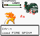 In Pokémon Stadium, the player can select a move during each turn of Fire Spin's duration. If the target switches out before the duration ends, the incoming Pokémon will not be automatically attacked; instead, the user's turn is skipped. Fire Spin will negate the recharge turn of Hyper Beam only if successful.