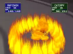 | The opponent is trapped in swirling flames. | |||