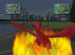 Thu-Fi-Zer waves its wing and a powerful wave of fire comes out and hits the opponent. | ||