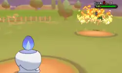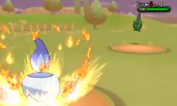 Delphox lights the tip of its branch on fire and throws it at the opponent. | ||