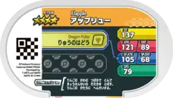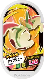 Flapple (Japanese: アップリュー Appryu) is a Grade 4 Pokémon Mezastar tag. It is part of the first Gorgeous Star set.