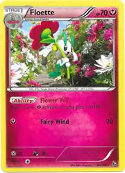 Flower Veil is an Ability in the Pokémon games that Floette can have. Fairy Wind is a move in the games that Floette can learn. This card's Pokédex entry comes from Pokémon X.