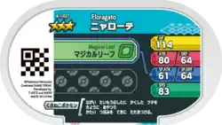 Floragato (Japanese: ニャローテ Nyarote) is a Grade 3 Pokémon Mezastar tag. It is part of the first Gorgeous Star set.