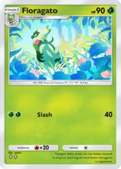 Floragato (Japanese: ニャローテ Nyarote) is a Grass-type Stage 1 Pokémon card in Pokémon Trading Card Game Pocket. It is part of the Shining Revelry expansion.