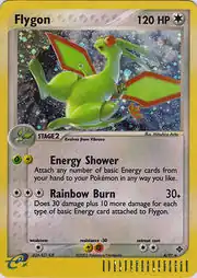 Flygon (Japanese: フライゴン Frygon) is a Colorless-type Stage 2 Pokémon card. It is part of the EX Dragon expansion.