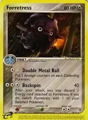 Forretress (Japanese: フォレトス Foretos) is a Metal-type Stage 1 Pokémon card. It is part of the EX Dragon expansion.