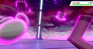 Gigantamax Gengar forms multiple giant objects around itself. The objects then glow purple and are hurled at the opponent. When the move hits, the opponent becomes briefly covered in a burst of dark purple and red energy and rings of purple energy appear around their ankles, preventing them from leaving the battle.