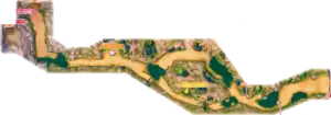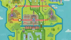 Route 3 is a single long road stretching west of Motostoke, with an intersection in the middle that splits into two before joining back to a single path. An inaccessible path to the north leads to a processing plant that produces energy from the materials mined at the nearby Galar Mine, which the route connects to at the northern end. Near the northern end is also a Pokémon Camp. A woman next to the Galar Mine entrance will fully heal the player's Pokémon if talked to. A secluded cliff on this route can be accessed from within the mine.