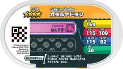 Galarian Slowbro (Japanese: ガラルヤドラン Galarian Yadoran) is a Grade 4 Pokémon Mezastar tag. It is part of the third Gorgeous Star set.