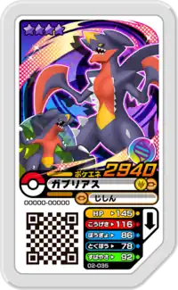 Garchomp (Japanese: ガブリアス Gaburias) is a Grade 4 Pokémon Ga-Olé disk. It is part of the second set.