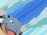 Finally, in The Ties That Bind, the fully evolved Blastoise was revealed to Ash when Gary sent it out to battle Heracross. In Gary's Full Battle against Ash in Can't Beat the Heat!, its Hydro Pump managed to blast through the rocky terrain and defeat Ash's Heracross in a single hit. It then stalemated his Muk, completely nullifying Muk's Sludge Bomb with its Rapid Spin, but unable to gain much purchase with its Skull Bash. After Muk smothered Blastoise with its body, Blastoise used Hydro Pump to blast Muk off and injure it. Ash pulled Muk for the type-advantaged Bayleef, but Blastoise overcame her as well, deflecting Razor Leaf with Rapid Spin, then using its Bite attack on her leaf and knocking her out by throwing her aside.