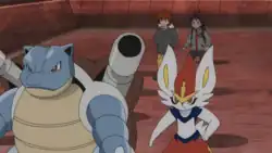 Blastoise appears to have a team spirit, briefly nodding to Cinderace after they manage to fulfill a Project Mew mission.