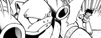It was recalled until the final bout when it fought against Charizard, who had overcome Scizor and Golem just as Blastoise had defeated Heracross and Bayleef. With a type advantage and having had a break between battles, Blastoise was quickly on the front foot, deflecting Flamethrower with Rapid Spin and hitting with Hydro Pump and Skull Bash. It neutralized Charizard's aerial advantage by using Hydro Pump to keep him at bay, giving Charizard no opening.