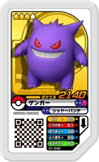 Gengar (Japanese: ゲンガー Gangar) is a Grade 3 Pokémon Ga-Olé disk. It is part of the first set.