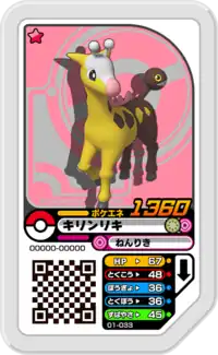 Girafarig (Japanese: キリンリキ Kirinriki) is a Grade 1 Pokémon Ga-Olé disk. It is part of the first set.