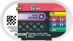 Golett (Japanese: ゴビット Gobit) is a Grade 2 Pokémon Mezastar tag. It is part of the first Gorgeous Star set.