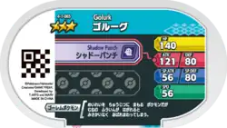 Golurk (Japanese: ゴルーグ Goloog) is a Grade 3 Pokémon Mezastar tag. It is part of the first Gorgeous Star set.
