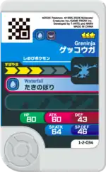 Greninja (Japanese: ゲッコウガ Gekkouga) is a Grade 3 Pokémon Frienda Pick. It is part of the second set.