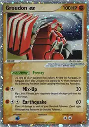 As long as your opponent has Kyogre, Kyogre ex, Rayquaza, or Rayquaza ex in play, Groudon ex's attacks do 40 more damage to the Defending Pokémon (before applying Weakness and Resistance).