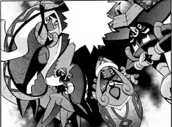 They all appeared again in Family Determination! and Revealing the Stuff of Legend!, where they performed a ritual by singing to activate the Altar of the Sunne to evolve Nebby into Solgaleo. They also upgraded Ash's Z-Ring to a Z-Power Ring to allow him and Nebby to perform Searing Sunraze Smash to open an Ultra Wormhole.