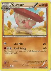 Gurdurr (Japanese: ドテッコツ Dotekkotsu) is a Fighting-type Stage 1 Pokémon card. It is part of the Dark Explorers expansion.