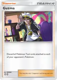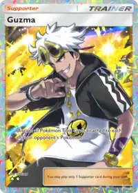 Guzma (Japanese: グズマ Guzma) is a Supporter card in Pokémon Trading Card Game Pocket. It is part of the Celestial Guardians expansion.