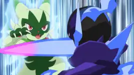With Liko, she finally comes to realize that her path isn't taking her upwards anymore and figures she must've taken a wrong turn. With Amethio also looking for Spinel nearby, the two of them end up hearing each other's footsteps and run into each other, shocked by the unexpected encounter. Recovering from his surprise, Amethio decides to fulfill what he vowed to do during their next meeting and steal Terapagos, sending out his Ceruledge. Refusing to hand Terapagos over, Liko places the bag containing it nearby before preparing to take on Ceruledge with Floragato, swearing to protect Terapagos. Liko remembers how badly their last confrontation on Roy's home island went for her, but feels confident that she and Floragato have much better chances this time.