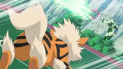 Following the appearance of Diana's Squawkabilly outside her window, Liko, her friends, and Friede follow it to find Diana herself in Brave Olivine's kitchen. Having heard of their current location in Kitakami from Lucca, she had ridden her Arcanine all the way there to reach them, as she has something important to share with them: new information about Lucius. Before sharing it, however, she challenges her granddaughter to a Pokémon battle. As such, the Rising Volt Tacklers gather on the wing deck to witness the showdown. Diana declares that this time, she won't hold back. Liko remembers how last time, even her and Roy working together had only been enough to barely land a single hit on Arcanine. This time, though, she and Floragato are feeling much more confident about their chances, despite being at a type disadvantage.