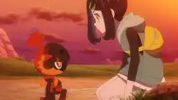 This is also the first time that a female main character has officially caught a Fire-type since Serena obtained her Fennekin in A Shockingly Cheeky Friendship!, 531 episodes earlier.