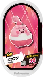 Happiny (Japanese: ピンプク Pinpuku) is a Grade 2 Pokémon Mezastar tag. It is part of the first Gorgeous Star set.