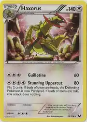 Haxorus (Japanese: オノノクス Ononokus) is a Colorless-type Stage 2 Pokémon card. It is part of the Dark Explorers expansion.