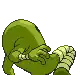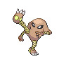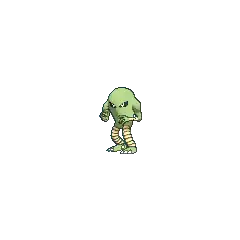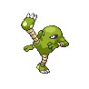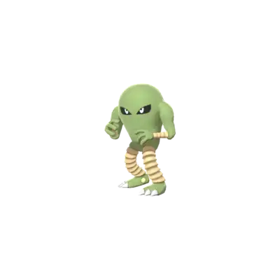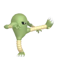 Hitmonlee's legs freely contract and stretch similar to a coiled spring (and one particular Hitmonlee can do this with its arms as well). The source of its power comes from the ligaments in its legs that Hitmonlee can fully control. This flexibility allows Hitmonlee to run with lengthy strides, giving it greater reach for its kicks. Its excellent sense of balance enables it to kick in succession from any position. Hitmonlee's kicking strength is incredibly powerful owing to its diamond-like soles. Right before kicking an opponent, Hitmonlee will harden the muscles on the sole of its foot, allowing it to maximize the full power of its kick. It has sometimes been nicknamed the "Kick Master". After battling, it rubs down its legs to relax the tight muscles. Rarely found in the wild, it is primarily found in urban areas. It has been seen competing with either Hitmonchan, or Hitmontop.