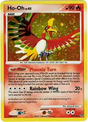 Once during your opponent's turn, if Ho-Oh would be Knocked Out by damage from an attack, you may flip a coin. If heads, Ho-Oh isn't discarded. Instead, remove all damage counters, Special Conditions, and other effects from Ho-Oh. Then, discard all cards attached to Ho-Oh (except for Energy cards). This counts as Ho-Oh being Knocked Out and your opponent takes a Prize card.