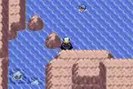In Pokémon Emerald, the player can see past the outer edges of the map, leading to a visual glitch with both the rocks in the water, as well as the heightened cliff in the south. Additionally, the game uses an incorrectly placed corner tile on the side of the west cliff.