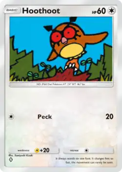 - This card's illustration was first featured on Hoothoot from the Neo Genesis expansion; both cards have the Peck attack.