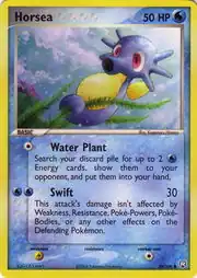 Horsea (Japanese: タッツー Tattu) is a Water-type Basic Pokémon card. It is part of the EX Team Rocket Returns expansion.