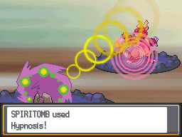 Spiritomb's face glows purple, and it releases multiple waves of energy from its face at the opponent, causing them to fall asleep. | ||
