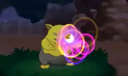 Munna releases a spiraling ring of psychic energy from the front of its body at the opponent, or Munna releases two black beams of energy from its eyes at the opponent. As the beams of energy fire at the opponent, they combine into one large beam. | ||