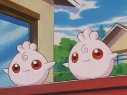 Two Igglybuff twins, nicknamed Gigglybiff and Gigglybuff, made their animated series debut in Same Old Song and Dance, under the ownership of Brittany, who was practicing for a concert with them. Jigglypuff was jealous of them as they were stealing its audience.