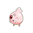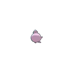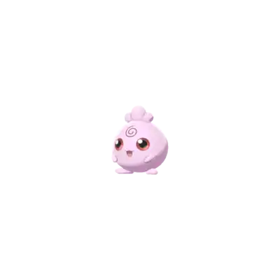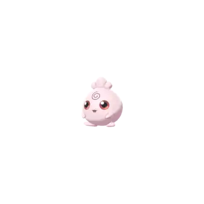Igglybuff is a small, bipedal balloon-like Pokémon that is completely pink. Its body can turn deep pink when the temperature increases, or when it sings continuously. It has a rounded tuft of hair on top of its head, a small swirl-like pattern on its forehead, and red eyes. Igglybuff has small, stubby limbs, and is usually seen levitating in the air. Rather than walking, this small Pokémon bounces like a ball to move around, as its body is extremely soft and elastic — although it may not be able to stop if it does this. As Igglybuff moves, it secretes sweat with a sweet fragrance, which calms the emotions of its foes.