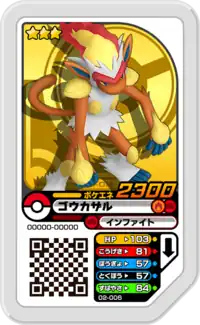 Infernape (Japanese: ゴウカザル Goukazaru) is a Grade 3 Pokémon Ga-Olé disk. It is part of the second set.