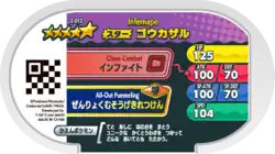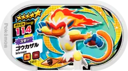 Infernape (Japanese: ゴウカザル Goukazaru) is a Grade 5 Pokémon Mezastar tag. It is part of the second set.