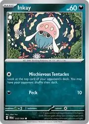 Inkay (Japanese: マーイーカ Maaiika) is a Darkness-type Basic Pokémon card. It is part of the Shrouded Fable expansion.