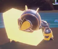 Iron Boulder was first discovered in Area Zero and is said to have originally been an ordinary Terrakion modified by a villainous organization. It stores laser-like energy within its sharp, axe-like horns, which it uses to plow through any obstacle in its path.[1] This energy is accumulated from the light stored within its head.[2] It can wield this stored light to rend its opponents. The horns can additionally be imbued with psychic energy while using physical attacks. Iron Boulder's name originates from a mysterious object recorded in Violet Book. While asleep, the orange energy on its head, horns, and feet turns black.