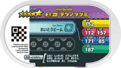 Iron Bundle (Japanese: テツノツツミ Tetsunotsutsumi) is a Grade 5 Pokémon Mezastar tag. It is part of the third Gorgeous Star set.