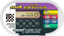Iron Thorns (Japanese: テツノイバラ Tetsunoibara) is a Grade 5 Pokémon Mezastar tag. It is part of the fifth Gorgeous Star set.