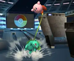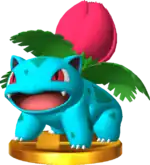 Ivysaur is a playable Pokémon used by the Pokémon Trainer alongside Squirtle and Charizard. It can use the moves Bullet Seed as a rapid aerial striking move and Vine Whip as a recovery move where the vine is shot out to latch onto the edges of a stage and pulled back up again. It also uses the projectile attack Razor Leaf. Ivysaur is a Middleweight and uses mostly physical Grass-type attacks. It uses SolarBeam in the Pokémon Trainer's Final Smash, Triple Finish.
