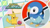 A particularly lean Piplup leaps from the ocean, and collapses from exhaustion. The boys take it back to the Cerise Laboratory, where Piplup proceeds to gorge itself on food. Chloe soon returns home to find everyone staring at something. Goh explains that it is a Piplup, but Chloe looks down at her feet and only sees an empty food bowl. Mimey frantically enters the room, and orders everyone to the bathroom. There, they watch as Piplup swims laps in the trough. Ren orders everyone into the lab, where they receive a call from Piplup's Trainer, Lauren. She explains that Piplup swam off from Snowpoint City, a northern city in Sinnoh, without reason. Piplup, however, appears unhappy to see Lauren again. Professor Cerise replies that they will return Piplup, so Ash and Goh volunteer themselves for the task.