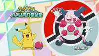 Pikachu grows increasingly weary from the walk, so Mr. Mime is forced to carry Pikachu on its back. They eventually find some food, with Pikachu finding a Lum Berry tree. A passing Spearow swoops in, however, and grab the Berry picked by Pikachu. Mimey uses Psychic to retrieve the Berry, though this only agitates the Spearow and its flock. Pikachu leaps to the rescue, zapping the Spearow flock and sending them off. As Mr. Mime smiles, injured and collapsed to the ground, Pikachu recalls a very similar scene when he and Ash were first attacked by a Spearow flock.